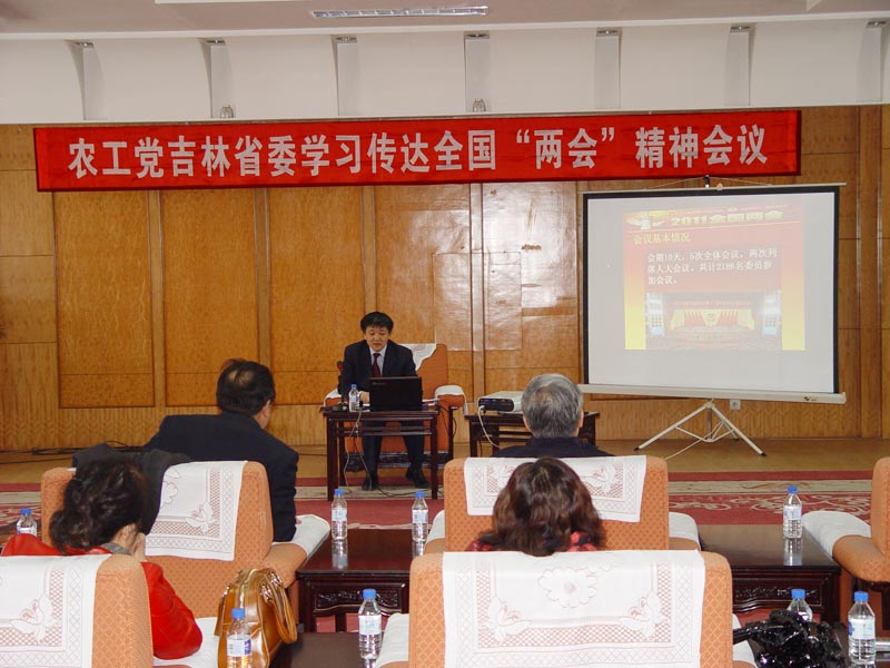 2011年全国“两会”精神会议。吉林省政协副主席、农工党吉林省委主委赵吉光参加了会议并就今年全国“两会”的基本情况以及会议讨论的相关热点问题进行了传达。