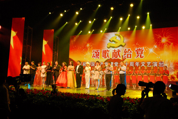 为庆祝中国共产党成立90周年,由农工党浙江省委员会、农工党上海市委员会、富通集团有限公司联办的“风雨同舟手拉手”巡演活动,昨晚在富阳影剧院首场亮相。
