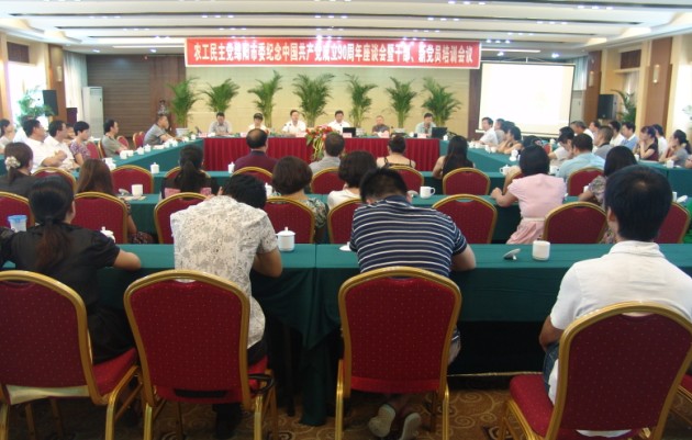 2011年6月29日上午,农工党绵阳市委会在东津酒店隆重召开纪念中国共产党成立90周年座谈会暨干部、新党员培训会,农工党绵阳市委会老领导、市委会委员,总支、支部主委、副主委,职能部门、专委会主任及2011年新发展党员共113人参加了会议。会议由郭桂萍副主委主持。市委会老领导施树基,绵阳市政协副主席、农工党绵阳市委会主委沈其霖,市委会副主委陈实、郭桂萍,秘书长赵朝晖及中共市委统战部党派科科长熊仪江出席了会议。