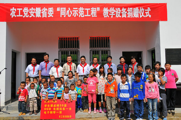 9月1日,农工党安徽省委“同心示范工程”教学设备捐赠仪式在金寨县吴家店镇包畈村举行,同时,这也标志着农工党省委开展“同心示范工程”、帮扶包畈村的系列活动正式拉开了序幕。安徽省人大常委、农工党省委副主委方才,省政协委员、农工党省委常委吴国进,省政协委员、省城乡规划设计院副院长、农工党省委委员江叶青,农工党合肥市委副主委林莉,中共金寨县委统战部部长刘正高、副部长张承斌出席了此次捐赠仪式。捐赠仪式由刘正高主持。农工党省委机关部分部室负责同志及吴家店镇、包畈村的相关领导也参加了此次捐赠仪式。