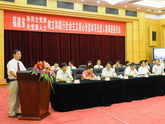 9月1日,福建省各民主党派、无党派人士树立和践行社会主义核心价值体系先进人物事迹报告会在福州举行。中共福建省委副书记、省纪委书记陈文清出席会议并讲话。会上,农工党福建省疾控中心支部党员程由注作为先进典型代表向大会作先进事迹报告,他两次用自己的身体作寄生虫活体实验的事迹深深感动了在场的每一位听众,他严谨求真的科研态度和甘于奉献的工作作风正是对社会主义核心价值体系最好的实践。