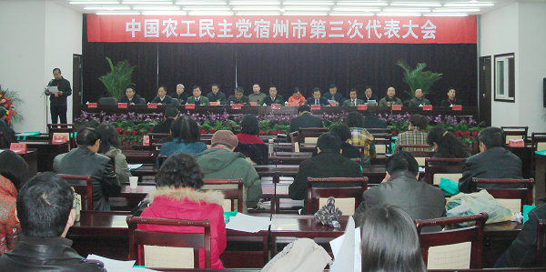 12月7日,中国农工民主党宿州市第三次代表大会隆重召开。全国政协委员、安徽大学副校长、农工党省委主委牛立文,安徽省人大常委、省政协副秘书长、农工党省委副主委方才,中共宿州市委副书记、市长张曙光,市政协主席姜元,市委副书记史翔,市人大副主任王子宜,市政协副主席、市委统战部长高士宏等领导同志出席大会开幕式,宿州市各民主党派、工商联和对口联系单位负责人应邀出席会议。