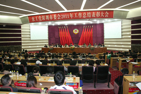 2011年12月21日下午,农工党深圳市委会在市政协礼堂召开2011年总结表彰大会,全市520多名农工党员参加了会议。市政协副主席、市委会主委陈思平,市委会副主委宋强、黄丽娜、胡纪泽、常巨平出席会议。会议由宋强副主委主持。中共市委统战部党派处副处长还光荣同志和党派处干部谢国民同志应邀莅临大会作指导。会议总结了2011年农工党深圳市委会的各项工作,并提出了2012年的工作要点。会议还对一批先进集体和先进个人进行了表彰。