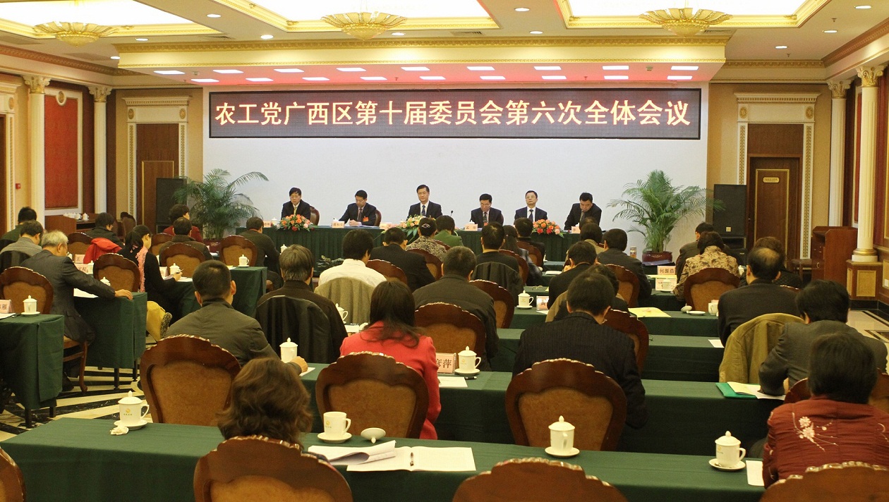 2011年12月29日至30日,农工民主党广西壮族自治区第十届委员会第六次全体会议在南宁举行。会议主要内容是传达学习贯彻中共十七届六中全会精神、农工党十四届五中全会精神和中共广西区第十次代表大会精神,听取和审议第十届委员会常务委员会2011年工作报告。
