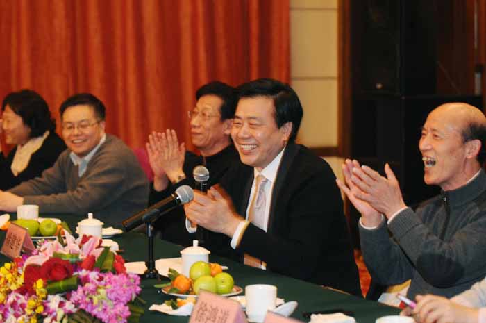 在良好的气氛中,与会代表和委员们踊跃发言,介绍自己的工作情况及对以后工作的一些想法和计划,交流了各自参政议政的情况。大家谈成绩,话未来,笑声不断,真情荡漾。随着陆国钦副主委的一首英文歌,姚克主委、老主委徐鸿道等的清唱将座谈会推向了高潮,会场上时不时响起热烈的掌声和欢快的笑声。