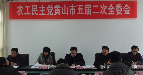2月28日,农工党黄山市委在屯召开五届二次全委会,农工党全体市委委员、机关科室负责人参加会议,大会由农工党市委副主委吴江主持。中共市委统战部副部长徐丽、党派科科长余鑫泉应邀到会指导。