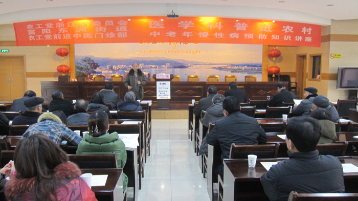 3月9日,为纪念毛泽东等老一辈革命家发出“向雷锋同志学习”等号召49周年,浙江省委会社会服务部联合富阳东洲街道、农工党前进中医门诊部,举办了“医学科普进农村——中老年慢性疾病预防知识讲座”活动。