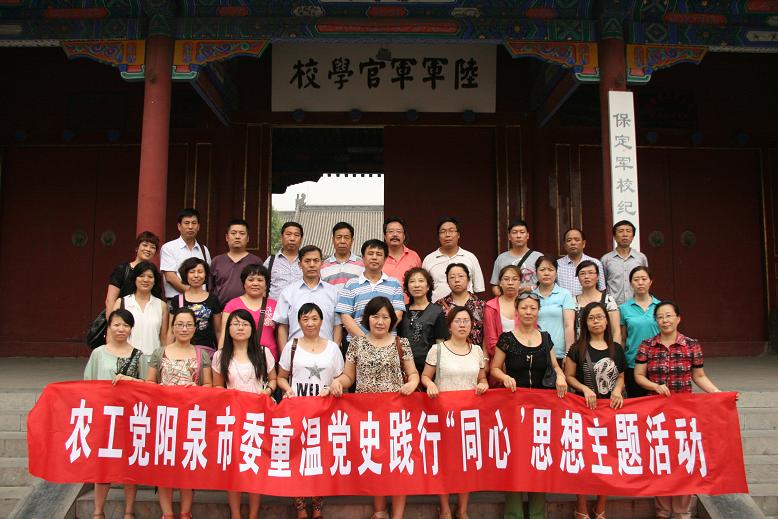 2012年8月9日是中国农工民主党成立82周年。7月21日-22日,农工党阳泉市委组织市委委员和骨干党员一行35人在主委李继红的带领下,赴中国农工民主党党史教育基地——保定军校纪念馆,开展以“重温党史,践行‘同心’思想”为主题的学习活动。