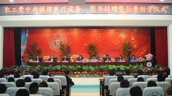 2012年9月24日至28日,应农工党中央邀请,农工党江苏省委作为唯一一家省级组织参加了“纪念农工党新疆区委会成立20周年大会”等一系列活动。其中,由我省农工党党员耿献会任董事长的南京路美医学科技有限公司分别向昌吉州医院、霍城县江苏医院分别捐赠80万元和150万元医疗设备,并提供临床技术指导。整个活动体现了农工党中央对新疆各族人民群众的关爱之情,也体现了农工党江苏省委对江苏援疆工作的有力支持。图为农工党江苏省委肖渡副主委率队到伊宁自治州霍城县江苏援建的江苏医院捐赠医疗设备。(王夫玉)