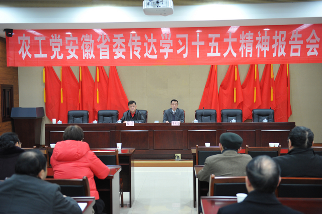 12月14日,农工党安徽省委召开传达学习农工党十五大精神专题报告会。农工党安徽省委主委牛立文出席报告会并传达十五大有关情况及大会精神。报告会由农工党省委副主委方才主持。农工党省直各支部负责人及省委机关全体工作同志参加会议并认真听取报告。