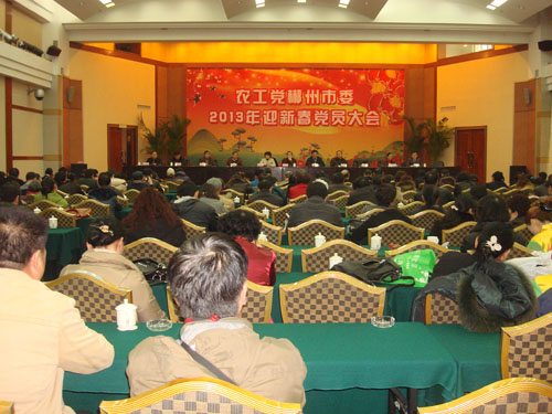 1月18日,农工党郴州市委在郴州国际大酒店召开会议中心召开2013年迎新春党员大会。参加会议的有全市农工党员,应邀参加会议的领导有:市政协副主席雷纯勇,中共市委统战部常务副部长陈珊玲,苏仙区政协主席陈国生,北湖区政协副主席刘弦,北湖区委统战部常务副部长宁电忠,苏仙区委统战部常务副部长陈志兵, 以及农工党支部所在单位的中共党委负责人。会议由农工党市委副主委张才忠主持。