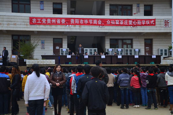 实兴小学距离毕节市织金县城45公里,地处偏远地区,有24名教师,531名学生,教学条件艰苦,教学设施落后。农工党省委在调研中获悉这一情况后,积极联系农工党党员企业家、贵州顺和投资公司董事长罗猛以及贵州众仙聚茶叶有限公司、贵阳市毕节商会等爱心企业筹资购买一批物品专程送到该校。