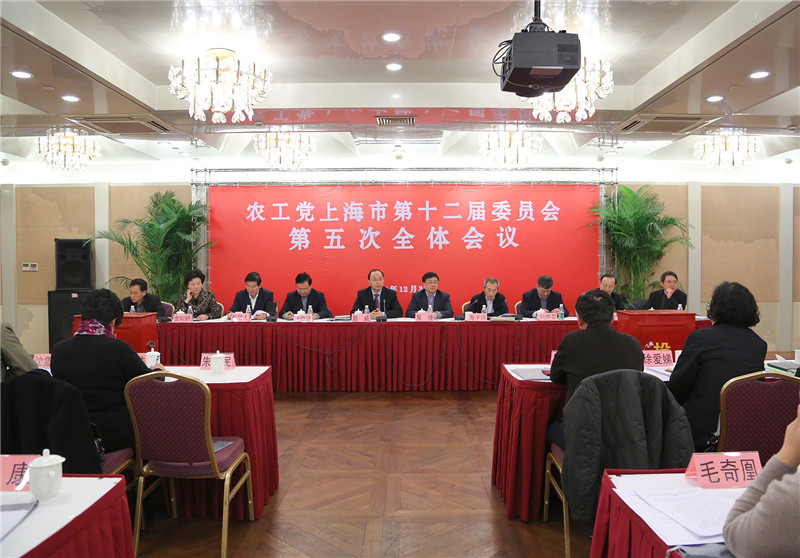 12月30日下午,农工党市委在市政协文化俱乐部丽都厅召开十二届五次全体会议。会议传达学习了农工党第十五届中央委员会第二次全体会议精神,听取并审议了《中国农工民主党上海市第十二届委员会常务委员会2013年工作报告》,审议并通过了《中国农工民主党上海市第十二届委员会第五次全体会议关于中国农工民主党上海市第十二届委员会常务委员会2013年工作报告的决议》,通报了有关情况。农工党中央副主席、市政协副主席、农工党市委主委蔡威出席会议并作工作报告。中共上海市委统战部副部长吴捷应邀出席并讲话。