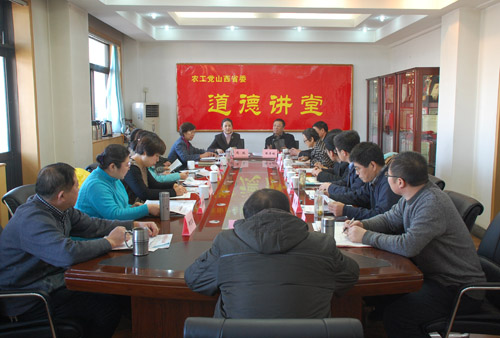 2013年12月31日,农工党山西省委举办道德讲堂,邀请省直机关第一届道德模范、山西大医院全科医学科主任、农工党山西大医院委员会主委冯玫作事迹报告。农工党山西省委专职副主委张李锁、秘书长王喜华、机关干部职工及省直部分党员16人聆听了报告。道德讲堂由张李锁主持。