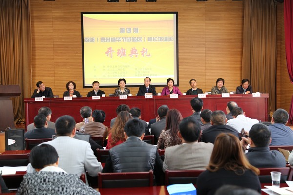 2014年3月26日上午,第四期西部(贵州省毕节试验区)校长培训班开班仪式在上海闸北区教师进修学院举行。本次培训班由中共上海市委统战部主办,农工党上海市委会、致公党上海市委、九三学社上海市委和台盟上海市委协办,农工党闸北区委会、闸北区教师进修学院承办。培训班将围绕学校文化建设、校长课程领导力、教师专业发展、素质教育实施模式等主题开展研讨交流,并通过专题学习、经验分享、校本实践方案设计与交流等方式,梳理出困扰学校发展的深层问题,学习和借鉴有关学校改革和发展的经验。农工党中央副主席、市政协副主席、农工党市委会主委、上海交通大学副校长蔡威出席开班典礼并讲话。中共闸北区委常委、区委统战部部长石宝珍,农工党市委会专职副主委金如颖、秘书长王晓东,致公党市委秘书长凤懋伦,九三学社市委秘书长朱红,台盟上海市委秘书长李碧影等出席仪式。农工党闸北区委会主委、闸北区卫计委主任叶强主持仪式。