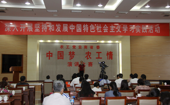 2014年5月22日至23日,农工党云南省委会坚持和发展中国特色社会主义学习实践活动“中国梦·农工情”演讲比赛在昆举行。来自农工党云南省各级组织的28名选手围绕“坚定理想信念,共筑中国梦”主题,进行了紧张的角逐。云南省委统战部副部长、省侨联党组书记童凤华,农工党云南省委会主委杨鸿生,农工党云南省委会副主委董峻等领导出席。