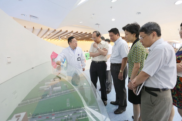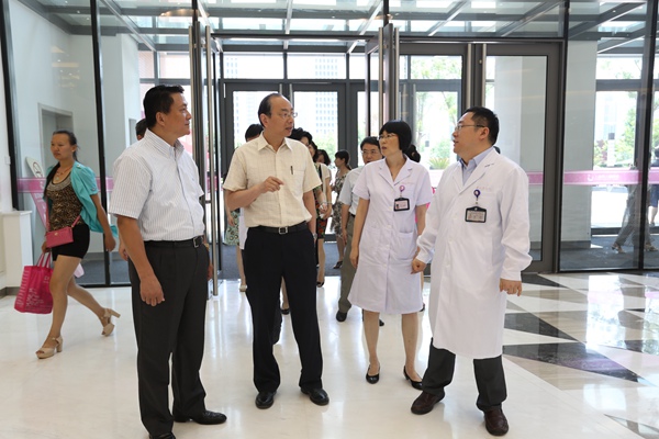 2014年7月21日上午,农工党中央副主席、农工党上海市委会主委蔡威、市委会专职副主委金如颖、秘书长王晓东等一行,冒着酷暑前往上海市妇幼保健中心调研。