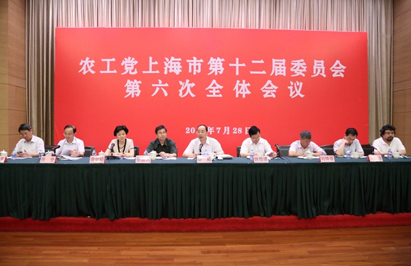 2014年7月28日下午,农工党上海市委会在市政协议事中心白玉兰厅召开第十二届委员会第六次全体会议。会议传达学习了农工党第十五届中央常务委员会第六次会议精神,表决通过了第十二届市委会监督委员会部分委员调整事项,通报了农工党市委会2014年上半年工作,并对下半年工作进行了部署。会前,在农工党中央“中国梦•农工情”演讲比赛总决赛中喜获殊荣的三位上海农工党党员作了汇报演讲。农工党中央副主席、市政协副主席、农工党市委会主委蔡威出席会议并作工作报告。