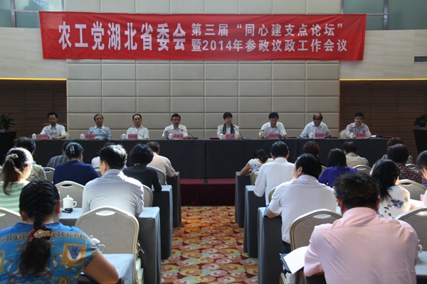 今年是深入学习贯彻中共十八届三中全会精神,全面深化改革进入深水期的“改革年”,为进一步贯彻落实中共湖北省委“建成支点、走在前列”的战略部署,并总结部署参政议政工作,表彰优秀参政议政成果,农工党湖北省委会于2014年7月29日-31日在襄阳市举办了第三届“同心建支点论坛”暨参政议政工作会议。省政协副主席、农工党湖北省委会主委吕忠梅,副主委杨占秋、曾宪初、严炳洲等出席会议。中共湖北省委统战部副部长冯艳飞、襄阳市委统战部部长李跃华应邀莅临会议并致辞。吕忠梅致开幕词,论坛开幕式由曾宪初主持。