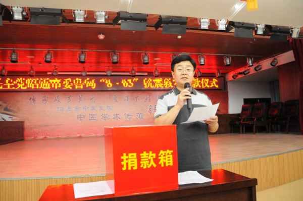 201488日晚,农工党昭通市委会组织党员在市中医院六楼会议室举行了“农工党昭通市委鲁甸8·03抗震救灾捐款仪式”。农工党昭通市委会主委宋万永出席仪式并作动员讲话。参加捐赠的95名党员共捐赠善款40100元。捐赠仪式由农工党昭通市委会专职副主委饶忠明主持。(梁开荣)