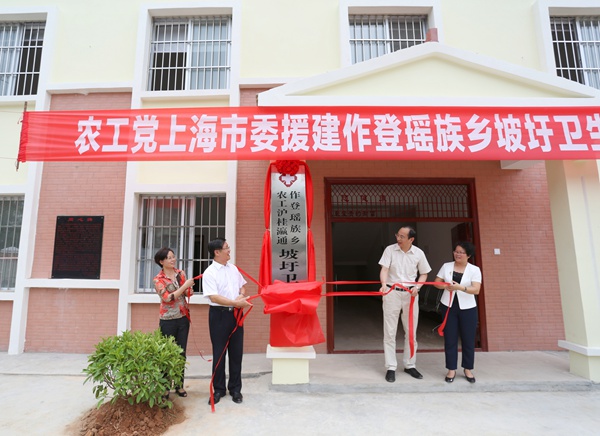 为改善当地村民就医环境,提高坡圩村医疗卫生服务水平,去年9月,农工党上海市委会与农工党广西区委会和田东县人民政府签署了坡圩卫生分院项目建设协议书。农工党上海市委会联络专委会副主任、上海灜通集团有限公司董事长陈伟峰主动捐资20万元用于建设作登瑶族乡坡圩卫生分院。为感谢农工党上海市委会及企业家的捐助,该卫生分院被命名为“农工沪桂瀛通作登瑶族乡坡圩卫生分院”,院墙上镌刻有“同心碑”。新落成的坡圩卫生分院建筑面积395平方米,开设有内科、外科、妇科和儿科门诊,并设置了观察病房、病房和医护房等科室,可覆盖周边36个自然屯的医疗卫生服务,帮助当地近1万名群众缓解“看病难”问题。这是农工党上海市委会继“农工沪桂康华那娄希望小学”、“农工沪桂瀛通朔良镇灵龙卫生分院”和“农工沪桂瀛通精星朔良镇百敏卫生分院”后,在广西援建的又一教育卫生帮扶项目。