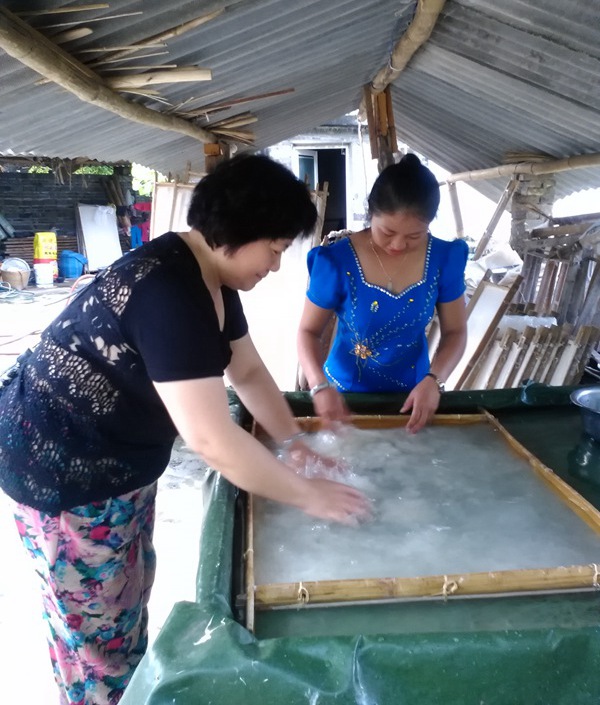 2014年9月19日,调研组在耿马县芒团村考察传统手工造纸