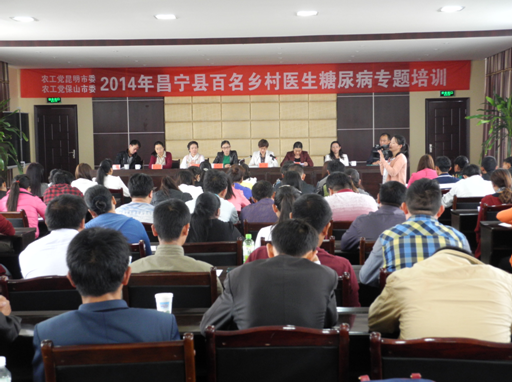 本次活动旨在提高保山市广大乡村医生对糖尿病等慢性病的诊疗水平。农工党昆明市委会党员、盘龙区人民医院医务科主任朱明艳作了“糖尿病的诊断与药物治疗专题讲座”;农工党保山市委会党员、保山市安利医院内一科主任姜玉兰从运动、饮食、教育、监测、药物治疗方面,介绍了糖尿病的防范及治疗方法,以及甲状腺、痛风等常见疾病的初步诊断与治疗。(王艳娟)