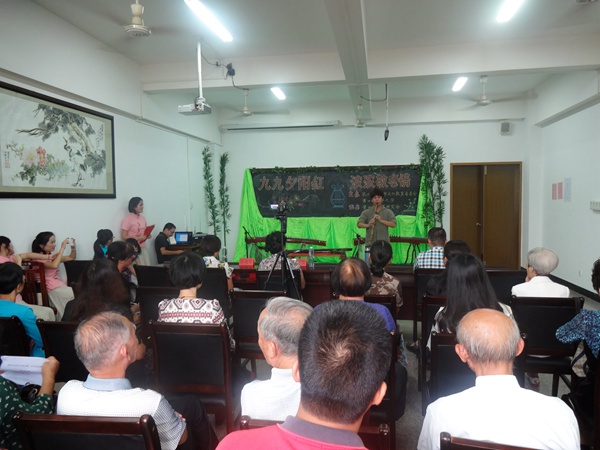 20141016日,农工党莆田市委会在莆田市老年大学举办九九夕阳红,浓浓敬老情琴筝文化进老年校园活动。莆田市琴筝研究会的10多老师为老年学员们演奏了古筝和古琴经典曲目并表演了独唱、葫芦丝合奏、箫独奏等精彩节目,还举办《传承经典文化,守候精神家园》的古琴文化讲座,深受欢迎和好评。(陈旅棱)