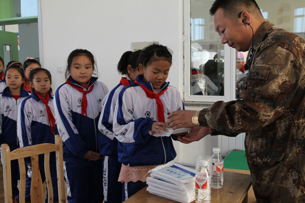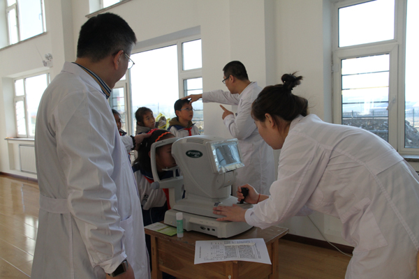 28日早7点30,在浓重的雾霾中,一行四辆车十五人从哈尔滨市区开赴松峰山镇。两个多小时后,队员们到达松峰山同心丽珠希望小学。没有休息,也没有仪式。一下车,无论男女,都自觉搬东西、安置设备。几分钟后,在学校教师的配合下,五年级的学生列队接受牙科和眼科义诊。身着统一预备役制服的“硬汉”,在给每个小学生发放物品时,都放下身段,和谒可亲,脸上带着微笑。一身白衣的牙科专家,在检查时,一口一个“宝宝”,对待小学生像对待自己的孩子一样亲切。有些小学生是第一次接受电子视力测试,怯怯地不敢把头放在支架上,眼睛不住地眨啊眨,一名专家用手温柔地扶着学生的头,另一名专家边耐心操作,边细声安慰。做牙科简易处置的几名专家,更是用精湛的医术,负责的态度,呵护着小同学们脆弱的小牙齿。