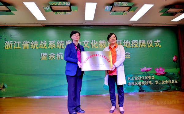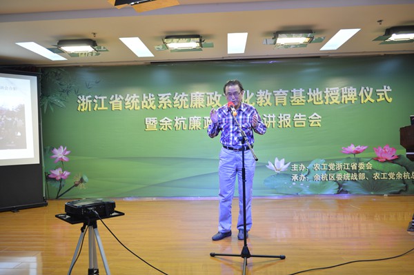 2014年11月12日,由农工党浙江省委会主办,余杭区委统战部、余杭区总支承办的省统战系统廉政文化基地授牌仪式暨余杭廉政故事演讲报告会在临平举行。省委统战部常务副部长金长征出席报告会并为余杭总支廉政文化教育基地授牌。农工党浙江省委会专职副主委陆国钦主持报告会。