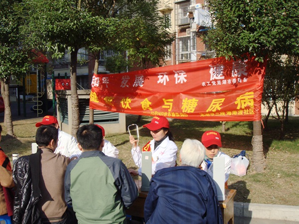活动以“和平、发展、环保、健康”为主题。活动当天,正好也是世界防治糖尿病日,专家们主要围绕“糖尿病防治”向小区居民提供了血糖检测、血压测量、疾病查疹、健康咨询等服务。本次义诊活动,市委会组织了内分泌科的几位专家专门向居民们提供糖尿病防治的相关健康咨询服务,并发放宣传资料。活动共服务居民200余人次。(傅阿庆)