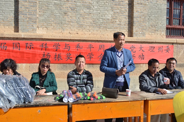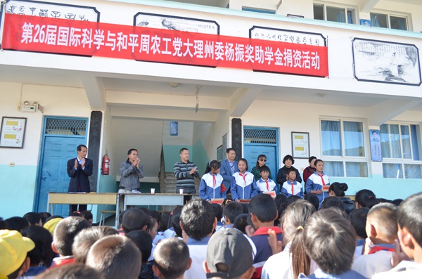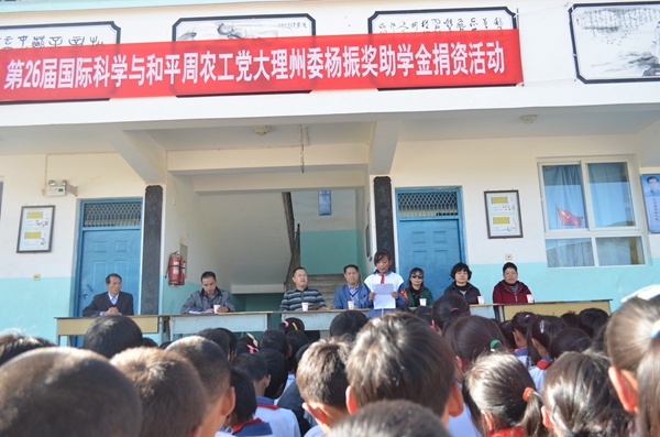 2014年11月18日,在农工党大理州委会副主委杨瑞东的带领下,农工党大理州委会赴剑川县老君山镇开展第26届“国际科学与和平周”活动,在新生小学、杉树希望小学举行农工党大理州委会杨振奖助学金发放仪式。
