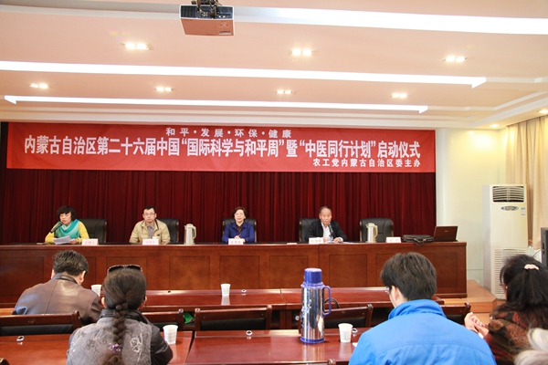 20141118,由农工党内蒙古区委会主办的内蒙古自治区第二十六届中国“国际科学与和平周”暨“中医同行计划”启动仪式在呼和浩特举行。区委会专职副主委王学东,秘书长耿豫蒙,副秘书长兼办公室主任陈永胜出席启动仪式。启动仪式由区委会社会服务副调研员霍弘主持。
