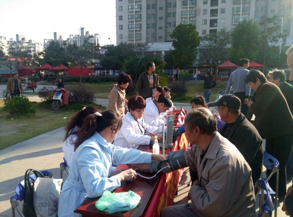 20141113日,农工党淮南市委会组织淮南市东方医疗集团总院及眼科医院、淮南市保健院、淮南市第一人民医院部分党员医生,在大通区居仁村活动广场开展了一场大型义诊咨询和宣传活动,引起了市民的极大关注。(张威)