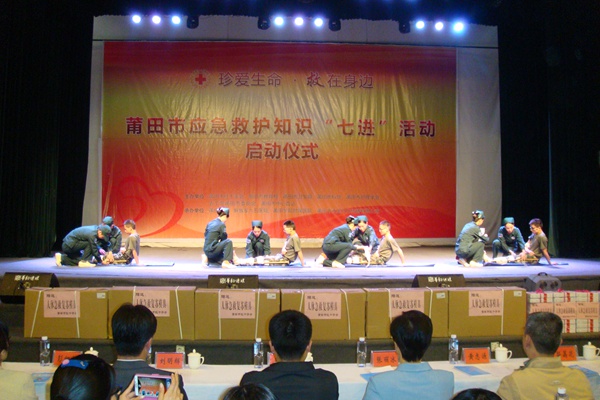 20141118日下午,农工党福建省莆田市委会联合莆田市红十字会、卫生局、教育局等多家单位,在莆田学院体育馆举办“应急救护知识进校园”活动。相关专家和专业人员向师生们深入浅出地讲解了应急救护的相关知识,生动形象地演示了心肺复苏术和创伤后的现场止血、包扎、骨折固定及搬运等基本技能,现场还分发有关资料和急救用品,深受上千名师生的欢迎和好评。这次活动也是农工党莆田市委会开展第26届“国际科学与和平周”系列活动的重头戏。(陈旅棱)