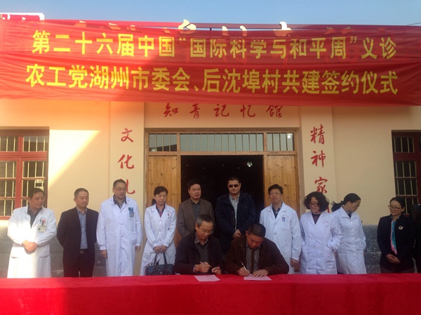 2014年11月14日,农工民主党湖州市委会与妙西镇后沈埠村村委会签订了美丽乡村建设帮扶意向书,正式将其确定为定点帮扶基地。湖州市政协副主席、农工党湖州市委会主委魏明,市委会副主委张明、王丹参加了本次活动。市委会将从“健康服务”、“爱心助困”、“文化进村”、“科技引路”、“民主管理”五个方面着手,充分发挥农工党组织的人才、智力优势,以智力支持、培养自我发展能力、挖掘发展潜力为主,助力推进后沈埠村的政治、经济、文化、社会、生态文明的全面发展。现场还开展了第二十六届中国“国际科学与和平周”义诊活动,来自湖城多家医院的农工党医卫专家们为村民们提供服务。(梅红)