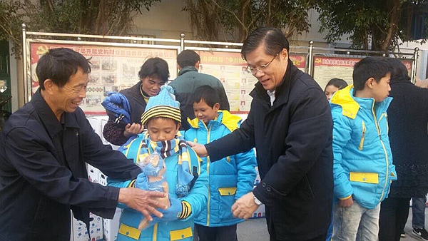 此次彭钊争取到自治区政协协力扶助基金会及李连杰壹基金会的支持,为田东县83名孤儿带来每人一份暖冬衣服和学习用具,他亲自为孩子们披上漂亮的冬衣并一一扣好衣服,勉励孩子们要好好学习,做一个品学兼优的好学生。虽然正值寒冬,但彭钊的到来让孩子们感受到阵阵温暖。