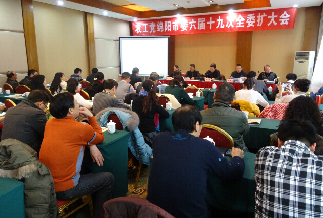 2015年1月15日下午,农工党绵阳市委会六届十九次全委扩大会在市干部培训中心召开。市委会委员,职能部门及专委会主任,基层委员会及支部主委,党内市政协委员及人大代表等参加了会议。会议由市政协副主席、农工党绵阳市委会主委沈其霖主持。