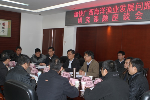 彭钊代表区委会对蒋和生局长一行的来访表示欢迎,他回顾了区委会近十年来就广西北部湾开放开发、北部湾划界渔民转产转业、广西近海渔业发展等问题开展调研、议政建言的成果。他表示区委会将一如既往的支持广西海洋渔业发展,建议区委会与区水产畜牧兽医局进一步联合调研后,将调研成果通过政协大会发言、提案、党派直通车的方式建言献策,为党委政府决策提供科学参考。