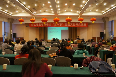 为庆祝第105个 “三八国际劳动妇女节”,2015年3月6日下午,农工党江苏省暨南京市妇女工作委员会联合举办知识讲座,邀请南京林业大学木材科学系主任、木材科学研究中心主任、著名红木材质鉴定专家徐魁梧教授为大家讲解红木知识。来自省直和南京市百余名女党员参加了此次活动。农工党江苏省委会副主委吴建坤出席活动并讲话。农工党南京市委会副主委孟钵出席活动。农工党省及南京市妇女工作委员会主任委员、农工党南京市委会副主委程大林主持讲座。
