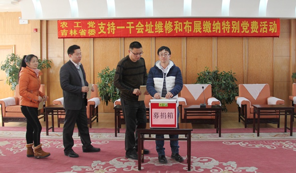 按照农工党中央《关于动员广大党员支持第一次全国干部会议会址维修和布展工作的通知》的要求,2015年3月13日,农工党吉林省委会支持中国农工民主党第一次全国干部会议会址维修和布展工作缴纳特别党费(捐款)活动在省委会机关举行。农工党吉林省委会副主委李其春、秦海涛,在长的部分党员以及省委会机关工作人员出席了活动。