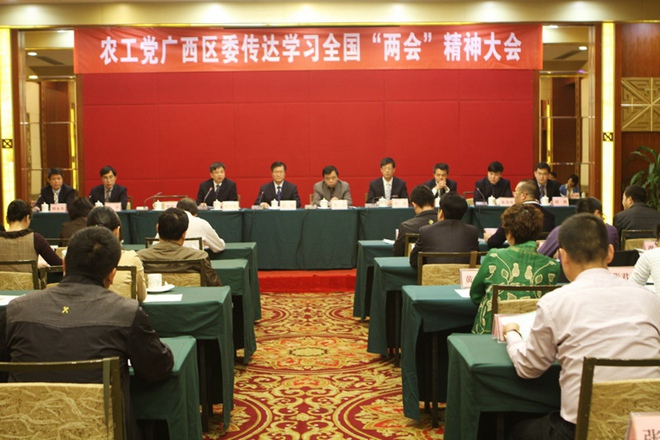 农工党广西区委会副主委李力,区委会副巡视员、秘书长李勇以及来自全区各级组织机关干部以及各专委会主任80余人参加大会,聆听学习了全国“两会”精神传达。(宋昭辉)