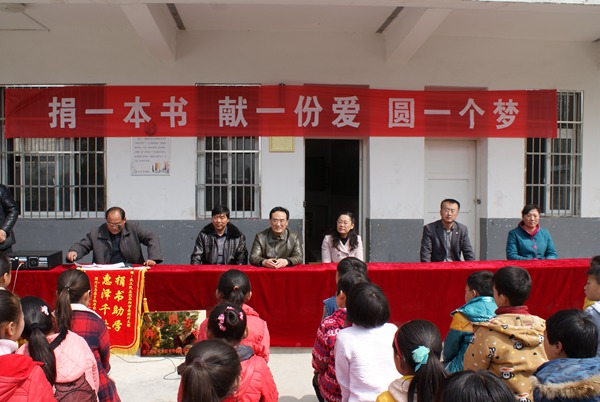 2015年4月9日,农工党阜阳市委会联合颍州区支部在阜阳市颍州区马寨姚老家学校开展了“捐一本书、献一份爱、圆一个梦”筹建爱心图书室活动。农工党阜阳市委会专职副主委刁重阳、颍州区支部主委铁玲等出席本次活动。