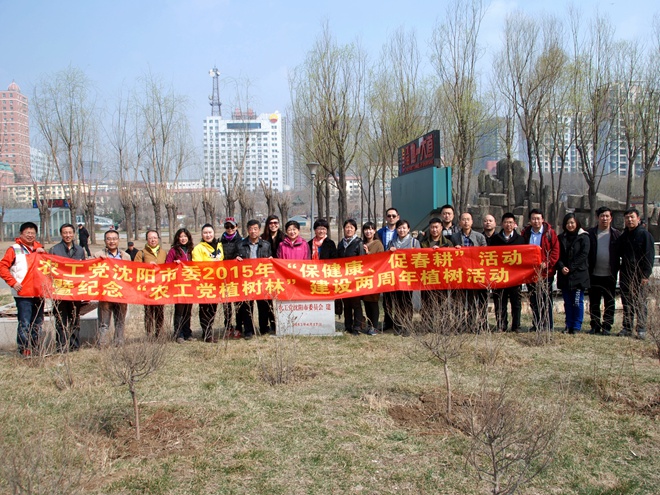 2015年4月10日上午,在农工党沈阳市委会副主委王莉的带领下,农工党沈阳市委会组织药械支部和科教支部20多名党员,以及全体机关工作人员到皇姑区碧塘公园,开展2015年“保健康、促春耕”活动暨纪念“农工党植树林”建设两周年植树活动,对“农工党植树林”的缺失树苗进行全面植补。