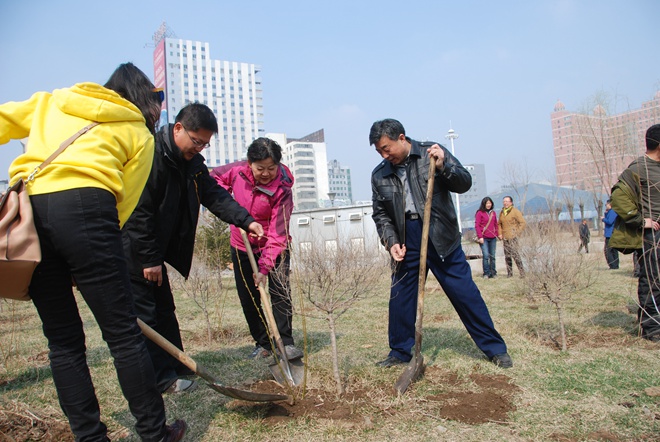 在植树现场看到,党员们热火朝天地对缺失的树苗进行补种。大家分工协作,有的将树苗植入坑中,有的挥锹填土。劳动一个多小时,就种下100多棵金叶榆球树,为公园增添一片新绿,为百姓们锻炼身体环境增添新的色彩,为沈阳打造生态宜居之都做出贡献。王莉在植树中鼓励大家要增强植树造林的积极性,做好造林绿化后期管理工作,确保种植成活率,为建设生态家园,优化人居环境,实现人与自然和谐发展做出更大贡献。