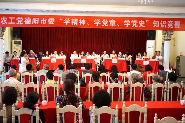 2015年5月15日,农工党德阳市委会为纪念中国农工民主党成立85周年,开展了“学精神、学党章、学党史”知识竞赛活动。农工党德阳市委会主委谢天佑,副主委喻晓钢、邱明、何苹,秘书长周丽姬出席活动。