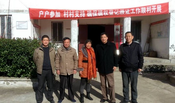 20151216日上午,农工党武汉市武昌区工委副主委张长滨和支部委员谢实代表农工党武昌区工委向新洲区徐古街桃花寨村捐赠垃圾收集桶110个。