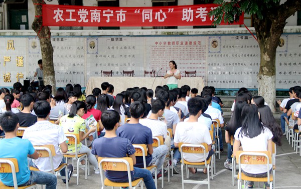 2015612日,农工党南宁市委会由文化与教育工作委员会牵头,到“同心”基地马山县林圩镇第三初级中学,为即将参加中考的500多名初三学生开展助考心理辅导活动。