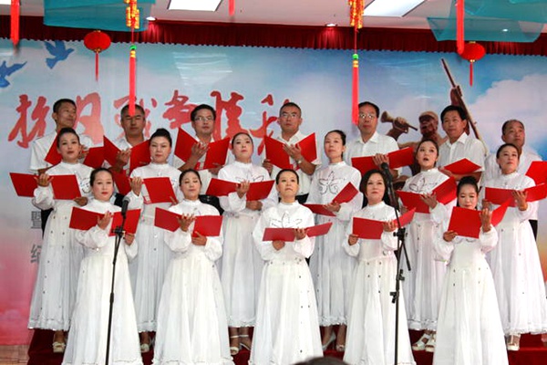 农工党阜阳市委会专职副主委刁重阳围绕爱国主题,精心策划准备,多方寻求资源帮助,精巧构思,丰富内涵,节目涵盖大合唱、快板、豫剧、京韵大鼓、梆剧、古筝合奏,样板戏等多种艺术形式。