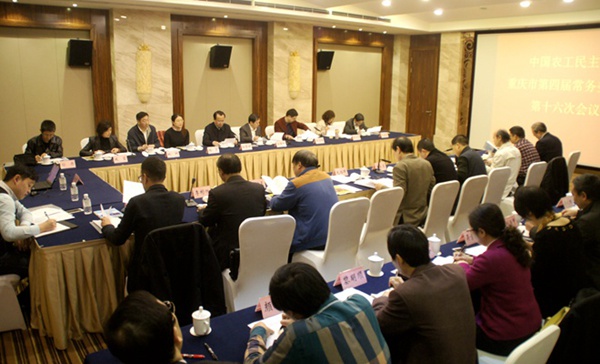 2015年11月21日,农工党重庆市委会为了进一步深入学习中共十八届五中全会、中共重庆市委四届七次会议与中共重庆市委统战工作会议精神,在雾都宾馆召开四届十六次常委会。会议由重庆市人大常委会副主任、农工党重庆市委会主委杜黎明主持,副主委任国胜、梅霞、但彦铮、姚树、秦少蓉、戎蓉、刘德绍及秘书长孙西出席了会议。